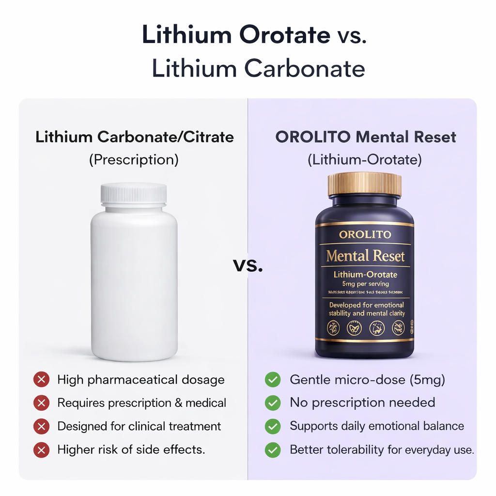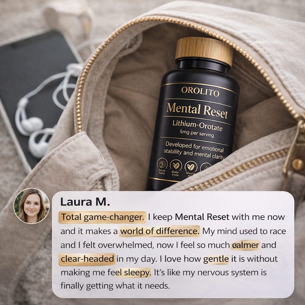 Orolito – Mental Reset delivers highly bioavailable lithium orotate with targeted micronutrients to gently support emotional stability, calm the nervous system, and promote brain health — without the heavy side effects of conventional lithium.